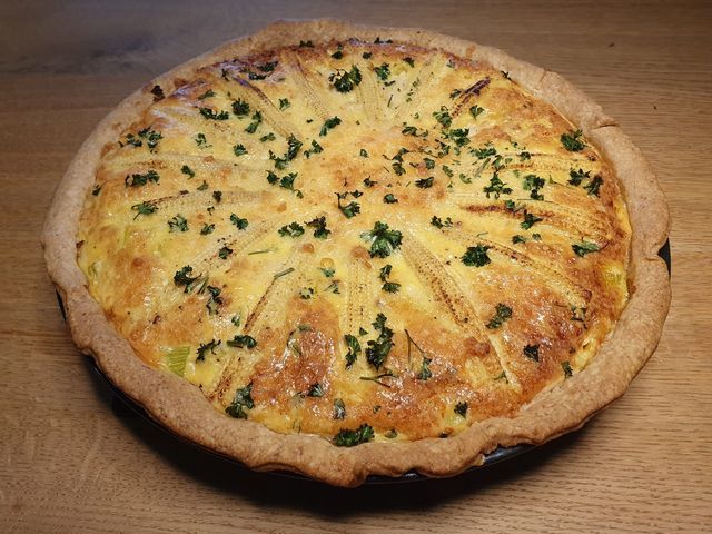 Quiche au maïs doux, au poireau et au poulet